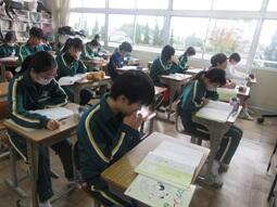 読み物資料「全校一を目指して」を使い、より良い学校生活について考えていました。