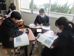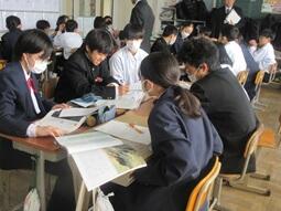 読み物資料「火の島」を使い、自然の偉大さや畏敬の念を感じていました。