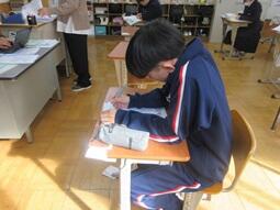 読み物資料「加山さんの願い」を使い、社会参画について考えていました。