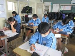 昨日、吹奏楽部の感動した演奏についてお知らせしましたが、学校へ戻ってからがさらに素晴らしかったのでお知らせします。学校へ戻り、楽器をトラックからおろし音楽室へ戻すのが、部長を中心に協力して実に手際がよく進められていました。さらに、玄関に脱いだ靴が、きれいに揃えられていました。一つ一つが実に丁寧で、確実です。吹奏楽部、素晴らしい生徒たちです。