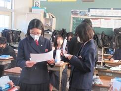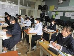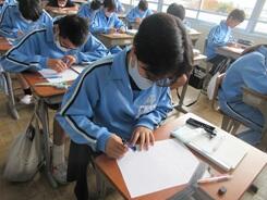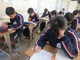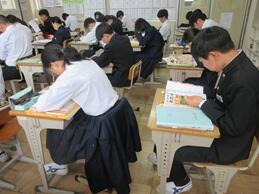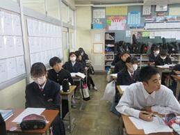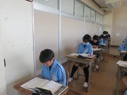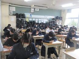 学習確認テストに取り組んでいました。ここまでの学習の成果が試されます。入試まで、がんばれ3年生。