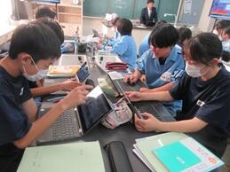 タブレットを使って、クイズ形式で光の反射の復習を行っていました。