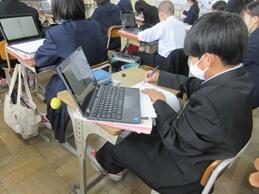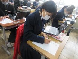 労働環境の変化と課題について学習した後に、復習に取り組んでいました。