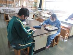 ブックカバーづくりに取り組んでいました。完成した生徒もいました。