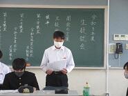 今日、6校時終了後生徒総会を実施しました。令和4年度の生徒会活動報告、会計決算報告、その後令和5年度生徒会年間活動計画(案)、会計予算(案)の審議が行われました。