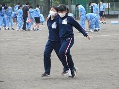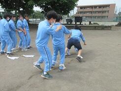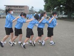 2人3脚の練習をしていました。初めてなので、ちょっと苦戦しているようでした。