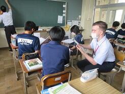 英語で書かれた日記を読んで、出来事や筆者の気持ちを読み取る授業が進められていました。