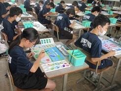 夏休み中、下都賀地区の小学校に、本校3年生女子美術部員2名が、小学生のポスター作成のお手伝にボランティアとして参加しました。その学校の校長先生からお礼の電話がかかってきましたが、その中でいろいろ褒めて頂きましたが1番うれしかったのは「礼儀正しい生徒さんたちですね。」という言葉でした。本校生徒が褒められるのは、とても気持ちのいいものです。