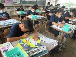 ポスター作成で、自分の作品を丁寧に彩色していました。