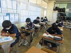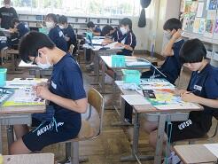 今日、3年3組の授業を見ているとき、プリント類が配付されると欠席者のプリントを丁寧に折って整理して机に入れている女子生徒がいました。ちょっと話をすると「夏休みの課題がわからなくならないようにしています。」とのことでした。素晴らしい心配りです。とてもよい光景を見ることができました。教科担任に聞くと、もう一人の女子生徒もいたとのことでした。2人の女子生徒にThank youカードを贈りたいと思います。