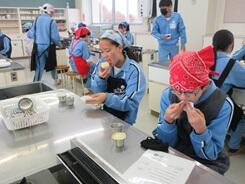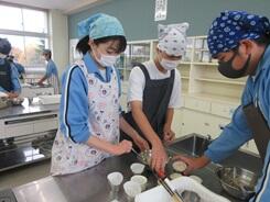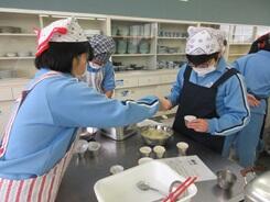 今日の1時間目に、3年6組が昨日の2組と同じく、幼児のおやつ作りで、蒸しパンの調理実習を行いました。6組もとてもおいしそうに出来上がって食べていました。