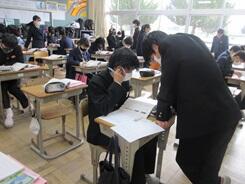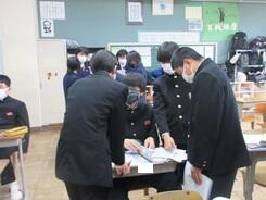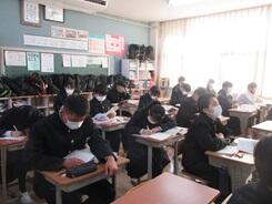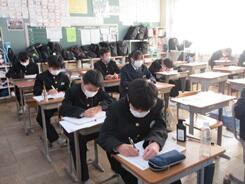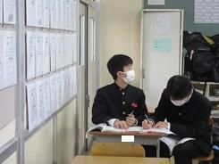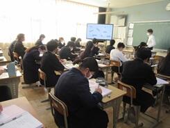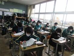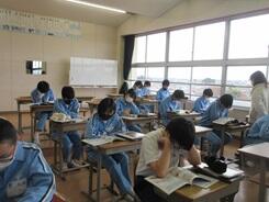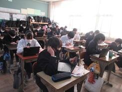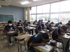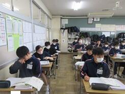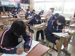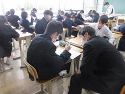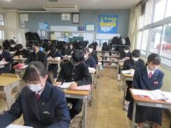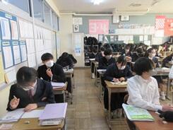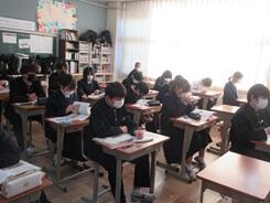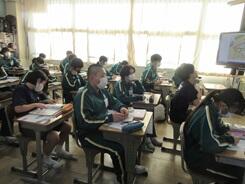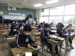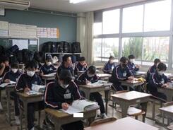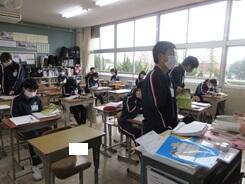 今日の1時間目、3年3組の社会科の授業を見ていると、欠席者の配付プリントを机の中に入れている女子生徒が目に留まりました。とても優しい行動に、ちょっと温かい気持ちになりました。今日から10日(日)まで、人権週間になります。こんな優しい行動が、人権を守ることにつながります。人権週間初日にこのような行動が見られて嬉しかったです。