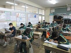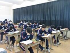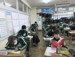 枕草子、徒然草、平家物語の暗唱に取り組んでいました。練習してから、テストを受けていました。