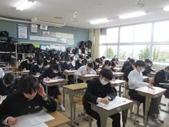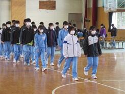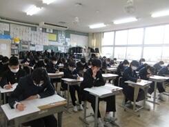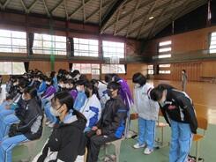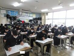 今日、3年生が10:00から同窓会入会式を行いました。その後、3、4校時は全校生で、卒業式の予行を実施しました。同窓会入会式も卒業式予行も、生徒たちは立派な態度で臨んでいました。