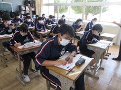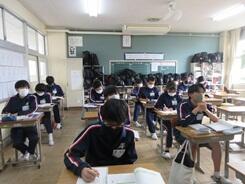 本時の授業に入る前に、漢字テストに取り組んでいました。難しそうでした。