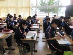 これから始まる社会の授業のガイダンスのあとに、復習に取り組んでいました。