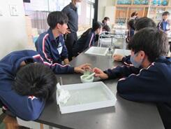 花粉を、顕微鏡で観察する授業が進められていました。