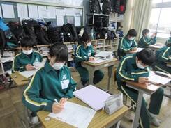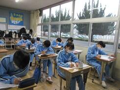 漢詩の現代語訳の学習をしてから、暗唱のテストを実施していました。