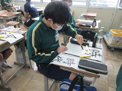 「止め」「はね」に気をつけて、「時代」という文字に挑戦していました。
