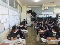 今日は、全学年1校時から5校時まで、学習確認テストです。どのクラスも真剣に取り組んでいました。