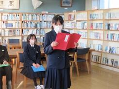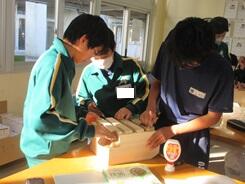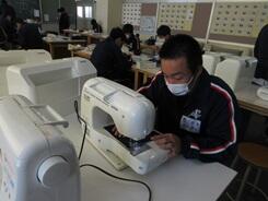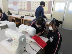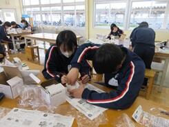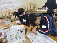 ブックカバーづくりが順調に進み、完成して写真撮影している生徒もいました。