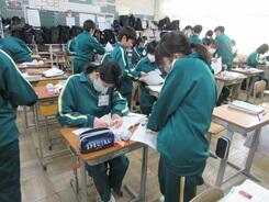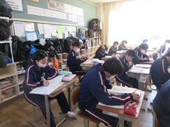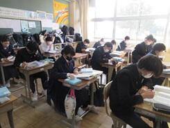 冬休み明け事情があり1日学校にいられる日がなく授業を見に行けていませんでした。そんな12日の金曜日、2年生の女子生徒と廊下で出会うと「授業見に来て、写真撮ってくださいよ。」というような趣旨の言葉をかけられました。授業を見に行くのを少しは待っている生徒がいることがわかり、うれしくなりました。