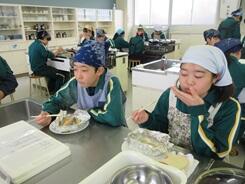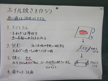 今日の3時間目に、1年5組が「鮭のホイル焼き」づくりに取り組んでいました。どのグループもとてもおいしそうに出来上がり試食していました。ぜひご家庭でも作ってみたください。