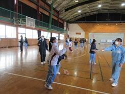 選択授業で、バドミントンと卓球のゲームをしていました。