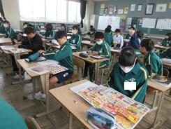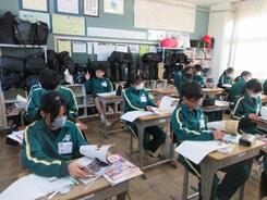 「いつものように新聞が届いた」の教材文で、メディアの役割などに注目しながら、感想をもつ授業が進められていました。