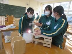 いろいろなラックづくりが順調に進み、組み立て終わって紙やすりで磨いている生徒もいました。