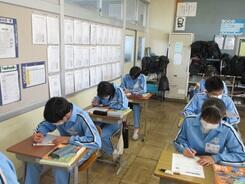 篆刻づくりが終わり、学習確認テストに挑戦していました。