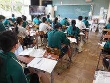 【ローテーション道徳】ローテーション道徳とは担任が他クラスで授業を行い、通常と違った雰囲気の中で、生徒の発言や考え方を通して、学びを深めていくことがねらいです。今日は3年生が実施していました。