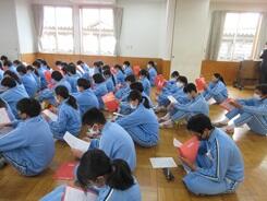 今日の5時間目に、3年生が私立高等学校入試事前指導を実施しました。冬休み中に私立高等学校の入試がスタートします。万全の体調で、もてる力が十分発揮できることを期待しています。校長の話は、これから受ける全ての試験が本番、○○の練習とか、○○の力試しというような気持ちで受けないように。全てが本番、でないと本当の本番に力が出せません。