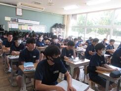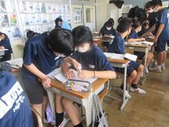 教材文「絶滅の意味」で、文章の構成を捉える授業の前に、聞き取りテストに取り組んでいました。