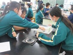 鉄と硫黄の混合物を加熱したときに、別の物質ができることを確かめる実験に取り組んでいました。