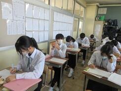 「花」の歌唱のテストを一人ずつ実施していました。それ以外の生徒は、音楽ワークに取り組んでいました。