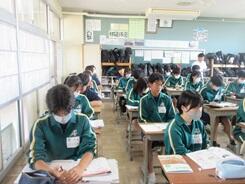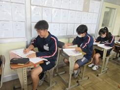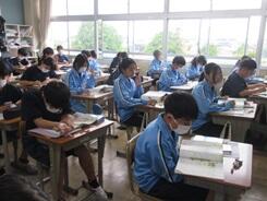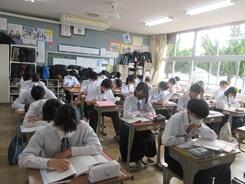 今日の朝の話でもう一つ、全ての教室に入ってきましたが、入ったときに窓の開いている教室は、とてもすがすがしい風が入ってきて気持ちよくなります。2年1組、1年4組は、朝早く最初に登校した生徒が窓を開けているので、とても気持ちのよい教室になっていました。気が利く生徒たちです。(ほとんどの教室は、まだ生徒が来ていません。)