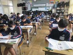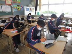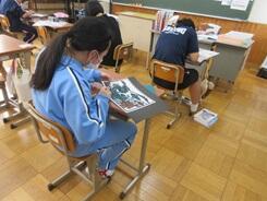 日本の交通網、通信網について、プリントを使って調べ学習に取り組んでいました。