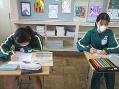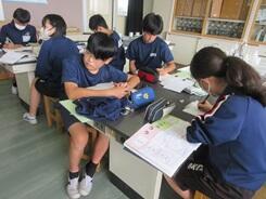 アイロンがけに挑戦していました。教科担任に話を聞くと、10人くらいの生徒が、自分でアイロンがけをしているとのことでした。ちょっと、びっくりです。