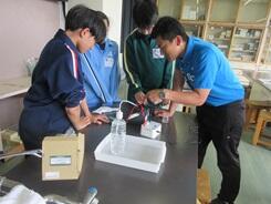 塩化銅水溶液の、電気分解の実験に取り組んでいました。
