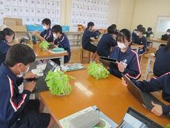 栽培しているリーフレタスの栽培日誌を書いて、収穫をしていました。