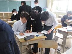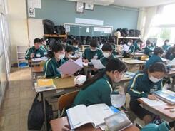 短歌を読み味わい、それぞれの短歌のよさが伝わる鑑賞文を書く授業が進められていました。