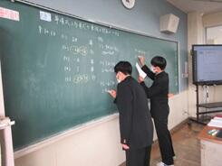 基礎コースと発展コースに分かれて、授業のガイダンスや、単項式と多項式の計算に取り組んでいました。