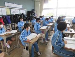 今日の朝、出勤途中、道路を走っている陸上部3年生男子生徒を見かけました。職員室でそんな話をしていると、ほかにも2~3人の先生が見たということでした。給食の時間に教室にいって聞くと、昨日から練習を始めたとのことでした。続く続かないは別にして、まずはやり始めたことを褒めたいと思いました。何事、始めないことには何も起こりません。(続くことを期待します。)