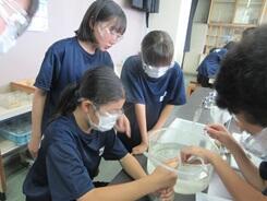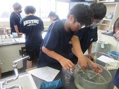 石灰石と塩酸、酢酸と炭酸水素ナトリウムを反応させて、二酸化炭素を発生させ、その性質を調べる実験が行われていました。
