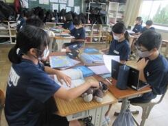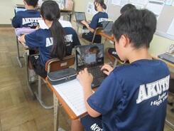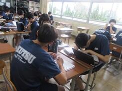 レポート作成で、調査結果と考察をまとめる授業が進められていました。