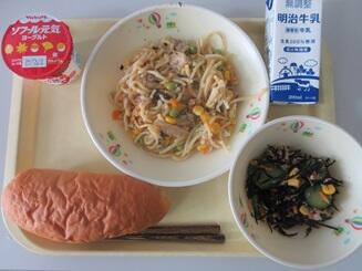 今日の給食は、高根沢焼きちゃんぽん、牛乳、牛乳パン、ひじきとツナのサラダ、ヨーグルトです。高根沢町で生産されたものは、キャベツ、きくらげ、玉ねぎです。今日もたいへんおいしく頂きました。