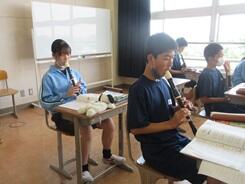 校歌の歌唱のテストと、アルトリコーダーで喜びの歌、かっこう、さんぽ道の練習をしていました。