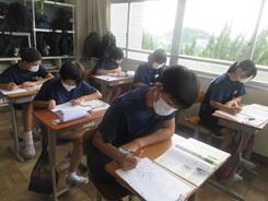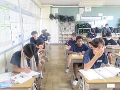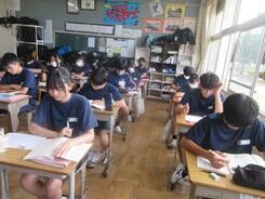 今日の2時間目に、町教育委員会が教職2年~4年目の教員の授業力向上を目的に実施している授業支援訪問を、3年3、4組の数学の授業で実施しました。数学科4年目の教員ですが、とても丁寧な授業で、順調に成長していることが感じられました。今日の授業を基に、さらに成長していくことを期待しています。