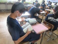 漢和辞典を使って、漢字の意味を調べる方法を学習していました。